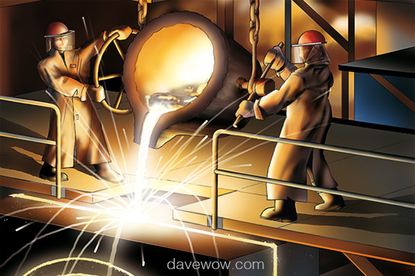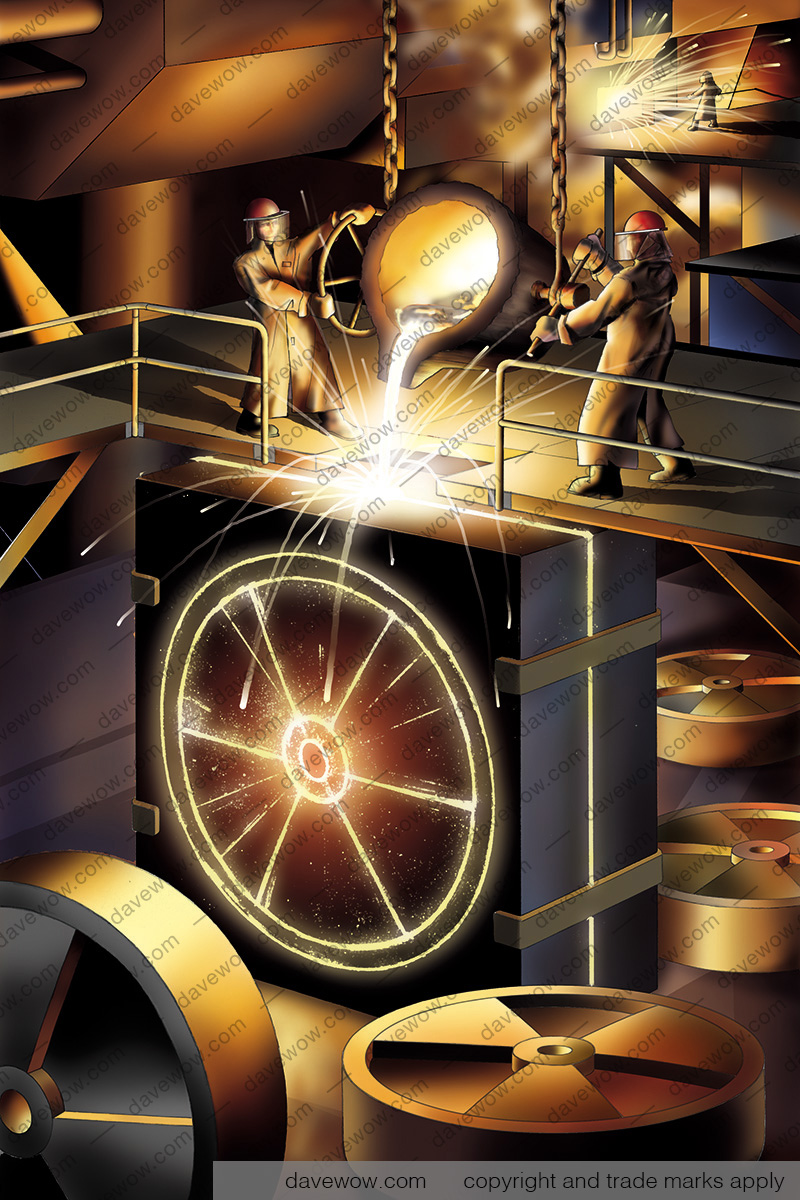 Catalogue image to promote heavy duty castors. For a range of high load bearing and very durable castors. Pencil and photoshop illustration.