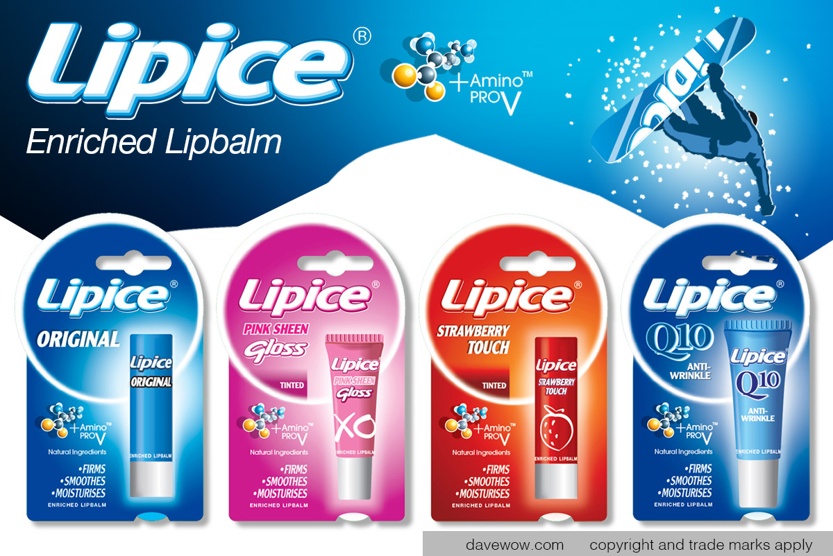 Lipice lipbalm range, from original basic through to tinted, flavoured, Q10 for skin, Sun screen and others.